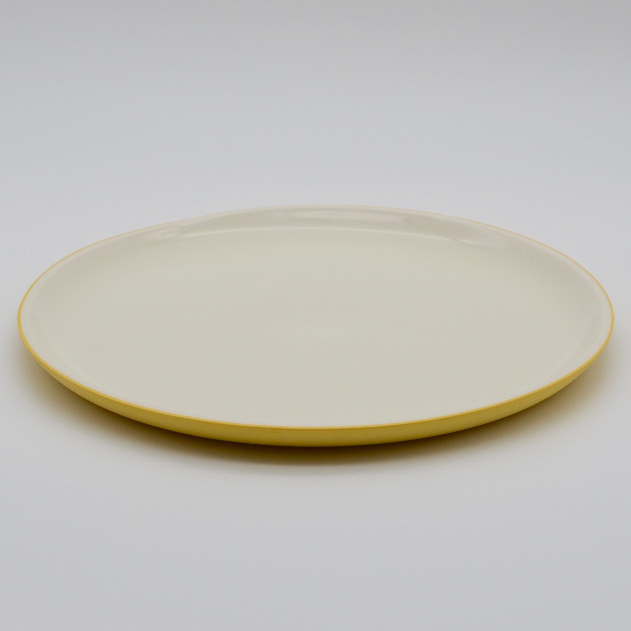 Each piece is made from porcelain slip with two layers, natural and coloured slip. All plates finished inside with clear glaze.